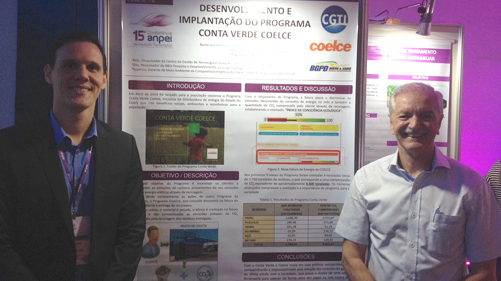 Entre os projetos apresentados, o Pesquisador Guilherme Cardim Gouveia de Lima, apresentou o trabalho “Desenvolvimento e Implantação do Programa Conta Verde Coelce“, resultado de programa de P&D da ANEEL junto da Companhia Energética do Ceará.